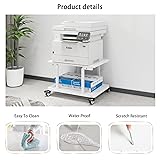 Natwind 2 Tier Laser Printer Stand,24''x20''x15'' Large Printer Table Copier Stand Under Desk,Heavy Duty Rolling Cart with Paper Storage Shelf,Printer Holder on Wheels for Home Office (White)