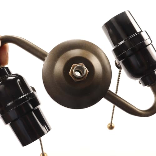Bieye SC07 E26 Light Socket Cluster with Pull Chain Switch and Electrical Wiring Accessories (2-Light, Antique Brass)