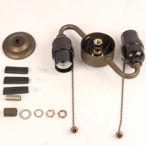 - 2 x E26 light socket with bakelite shell, pull chain switches.