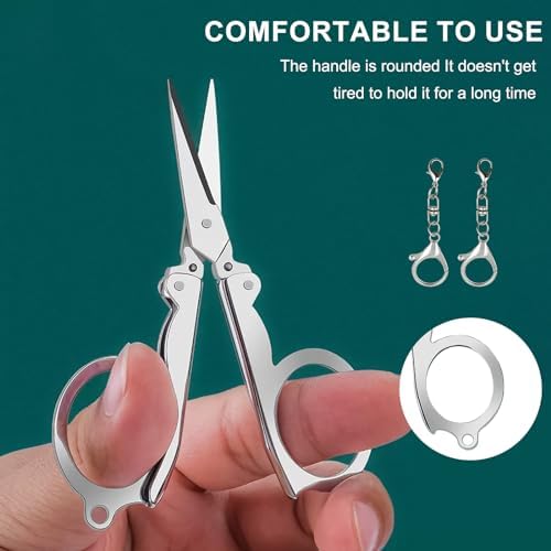 - Easy to Use: Mini scissors are lightweight and easy to carry, and can be put into pockets, purses, backpacks or first aid kits, suitable for travel or daily use. Foldable design hides sharp blades when not in use to avoid potential dangers. Each pair of scissors comes with a keychain, which can be hung on a carry-on keychain or backpack, making it easy to carry and avoid loss.