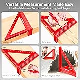 Multi-Functional Woodworking Tools: Crafted by combining a rafter square ruler and a triangle ruler with imperial scales, the WT103Bcarpenter square integrates measurement, calibration and marking into one. It serves as a high-precision layout wood working tools and accessories, perfect for DIY enthusiasts and carpenters engineers. 3D Multi-Angle Measuring Ruler: Featuring scales in three dimensions, this carpenter tools facilitate precise measurements of length, width, vertical height, and 0-90 degree angles. Easy to assemble and disassemble. Convenient to operate. Accurately mark 0-90 degree angles or draw perfect horizontal lines without rotating the woodworking square body. High-Precision Measuring Tools: Crafted with high-precision laser engraving technology, constructed from high-strength aluminum alloy with a thickened body, this woodworking ruler guarantees clear and fade-resistant scales and measurement stability. Its 8.0*7.0*4.0 inches size provides an extended measurement range, ranging from 1/16 inch to 8.0 inches. Professional Woodworking Tools and Accessories: The imperial measuring ruler comes with a professional carpenter pencil (built-in pencil sharpener) and 6 refills (2.8mm break-resistant) and an Allen wrench. Whether in workshops, construction sites or at homes, it can provide the necessary measuring and marking with comprehensive user experience. Durable and Elegant: Featuring an anodized aluminum alloy body, our woodworking tools carpenter square not only boasts an exquisite appearance but also exceptional wear, corrosion & rust resistance for extended longevity. Its lightweight and sturdy construction make it your long-term partner.