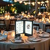 [Backlit Menu Holder]: WeChef LED Illuminated Backlit Menu Cover features built-in LED panels on 2 sides to light up automatically when It's opened and turn off when closed or unfolded over 180 degrees, adding a soft glow for your guests to read the menu in dimly-lit restaurants or porterhouse [Rechargeable Battery]: Built-in 1400mAh Li-ion rechargeable battery provides a stable power source for LED panels with a working time of up to 4 to 6 hours under continuous use or even longer when it's properly closed right after use, enabling hassle-free service to your customersll night long [Top Loading Design]: The menu cover opens to reveal 2 backlit panels that support 7" x 5 3/8" menus or wine lists, coming with a large opening at the top for conveniently inserting menu papers in seconds [Easy Maintenance]: Both synthetic leather exterior and frosted acrylic film interior feature water resistance for easy cleaning by simply wiping with a damp cloth, maintaining good hygiene for everyday use [Ideal for Various Occasions]: The menu cover is decorated with soft-touch and delicate leatherette trim around the edges to enhance the upscale atmosphere, making it ideal for displaying food, drinks, or dessert menus at restaurants, fine-dining establishments, hotels, cafes, porterhouse, nosheries, pubs, bars, etc.