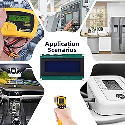 This is I2C interface 20x4 LCD display module, a new high-quality 4 line 20 character LCD module with on-board contrast control adjustment, backlight and I2C communication interface.The real significance advantages of this I2C Serial LCD module will simplify the circuit connection, save some I/O pins on Arduino board, simplified firmware development with widely available Arduino library. Superior Quality. We adopt Lead-free processes and immersion gold PCBs. The lead-free process gives safe of use and assurance. As a chemical process, immersion gold ensures a flat surface of the gold overlay pad, which can longer product life. Working voltage: 5V, Module size:98x60x9mm, Viewing area:77x24mm. ST7066U controller. The LCD panel has a Built-in independent potentiometer, backlight can be adjusted through the back potentiometer. You can control the readability of the displayed content. Compatibility: It can be used with all current development boards, such as Arduino, Raspberry pi, Tinkerboard, Nano pi, Banana pi, stm32 and so on. 2004 blue LCD screen are widely used in various applications, including digital clocks, temperature and humidity displays, electronic voting machines, industrial automation, robotics, embedded projects, your own DIY circuits and more.