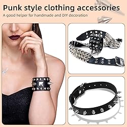 Packing list: You will receive 180 pcs of metal cone spikes, three sizes 7*10mm, 8*12mm, 10*26mm, color: silver. A punch with a hole diameter of 2mm and a screwdriver, all items are placed in a plastic storage box. High-quality material: Our nickle cone spikes are made of high-quality zinc alloy, smooth and bright surface, high-quality fine workmanship, not easy to wear and fade, these nickle cone spikes are very suitable for craft decoration. Easy to use: These punk metal spikes studs heads come in a variety of sizes and colors. You can choose the right size according to your needs. Use a hole punch to punch a hole in the fabric (note that the hole is not too large), and then fix the punk rivets with screws. Wide range of uses: Our punk spikes can be used for DIY various craft decorations, such as decorative bags, belts, shoes, clothes, collars, etc., making your DIY accessories cooler and different. Individuality: These screwback studs rivets are rich in size and color, and can be matched with different sizes and colors, allowing you to DIY your own punk style. These punk pegs are super cool and stylish, and are also great for someone who loves goth or punk style.