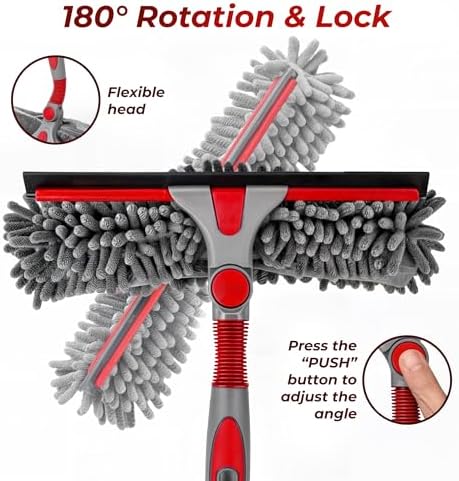 - ✅ Versatile Window Cleaning Kit: This window cleaning tool has 3 different head options to deal with diverse cleaning needs including a 10" rotatable bendable rubber scraper, microfiber and chenille wiper cloths. Various combinations of the window washing kit with the adjustable attachment make cleaning easy and efficient.