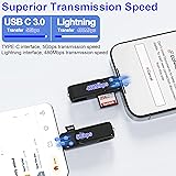 Dual Lightning & USB-C Connector : This iPhone SD card reader combines Lightning and USB-C 3.0 interfaces, making it compatible with different types of devices, such as iPhone 15/14/14 Pro/14 Pro Max/13/13 Mini/13 Pro/13 Pro Max/12 Mini/12/12 Pro/12 Pro Max/11/XR/XS/X/8/7/6/5, MacBook Pro/Air, iPad, and other USB-C-enabled devices. This versatility enables you to easily share and transfer data between different devices SD/MicroSD Dual Card Slot: This 2 in 1 camera adapter to iphone adopts SD/Micro SD (TF) slot design, with a capacity of up to 2 TB. You can easily view files or back up and archive photos and videos. It is compatible with SD, SDHC, SDXC, Micro SD, TF card, micro SDHC, micro SDXC memory card, etc Read two cards simultaneously: USB C SD card reader contains 2 slots to insert cards, which avoids repeatedly insertion and removal. With both TF card slot and SD card slot, the SD to lightning adapter accelerate your efficiency with dual card access, plug and play, no need for extra power source. Transferring can make between 2 slotted cards or between OTG devices and 2 cards simultaneously High-speed transfer: Although the Lightning interface has a transfer rate of 480Mbps, and the USB-C 3.0 interface can transfer up to 5Gbps. But no matter which interface you use, this card reader can provide fast data transfer speeds, allowing you to quickly transfer large amounts of data from the card to your computer or other devices Plug and Play: Card reader for camera memory card is usually small and light, No driver required, plug and play, easy to operate.It can be an ideal companion for those who travel, take photos, or need to use memory cards frequently. Whether in the workplace, on the road, or in outdoor environments, this type of card reader can conveniently help you manage and process the data in the memory card
