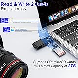 - SD Card Reader for iPhone , Dual Connector Lightning/USB-C Micro SD Memory Card Reader, Portable 2 in 1 SD and TF Card Adapter Trail Dual Connector(Lightening&USB-C) Memory SD Card AdapterTwo interface methods for our SD card reader for iPhone iPad, that not only work with iPhone with lightening ports but also with iPhone iPad/Macbook/iMac and Android devices with USB-C ports.Lightning connector:Supports iPhone 14/14 Pro/14 Pro Max/13/13 Mini/13 Pro/13 Pro Max/12 Mini/12/12 Pro/12 Pro Max/11/XR/XS/X/8/7/6/5 USB-C connector:Support for iPhone 15 series, iPad or Macbook.Support for Android phones/tablets/laptops and other USB-C devices.High-speed transfer:The USB-C 3.0 interface can transfer up to 5Gbps, 10X faster than others.This card reader can provide fast data transfer speeds, allowing you to quickly transfer large amounts of data from the card to your computer or other devices.SD&TF Dual Card Slots Card Reader for iPhone iPadThis 2 in 1 camera adapter to iphone adopts SD/Micro SD (TF) slot design, with a capacity of up to 2 TB.You can insert and read two SD or TF cards at the same time. This means you can read or transfer data on two cards in one operation, improving efficiency and convenience.Insert the memory card in the SD/Micro SD card reader and connect it to the iPhone. Click on the 'Photos' application and find 'Import', plug and play.With our memory card adapter, you can read SD card or Micro SD card taken by digital camera, Dash Cam or Trail Camera.You can also share photos or videos anytime and anywhere, having fun with friends or family in the wild.Camera Viewer for iPhone iPad MacBook SD Memory Card Reader