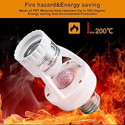 【Motion Sensor Light Socket】When the motion sensor light socket is connected to any E26 / E27 bulbs, it will turn on and delay off within the sensing range (8-10ft) automatically by sensing the body temperature 【Adjustable Bulb Adapter】Light sensor adapter could set time(10s-5min) and LUX illumination (10-2000lux),you could set time and LUX according to your needs. 【Applicable Light Socket】This motion sensor light bulb socket is suitable for all E26/E27 screw on illuminates, it can convert your ordinary light bulb into an infrared sensor light. Maximum power is 60W & maximum voltage is 110v-240v.👉Please Note: Light bulb is not included.👈 【Apply for】You could use in Basement, Pantry Room, Storage Room, closet, stairs, corridors, pantry, hospitals, exhibition halls, The sensor light socket adapter could be used in Garage,Closet,Basement,Laundry Room,Porch,Storage Room,corridor,aisle and more. etc. 【Flexible Motion Solutions】Experience the versatility of our motion light sensor socket. Suitable for both indoor and outdoor use, it provides reliable motion-activated lighting for basements, as well as other indoor and outdoor spaces. Upgrade your lighting with ease.