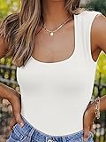 PINKMSTYLE Womens Basic Fitted Square Neck Tank Tops Double Lined Summer Tops Cute Sleeveless Shirts
