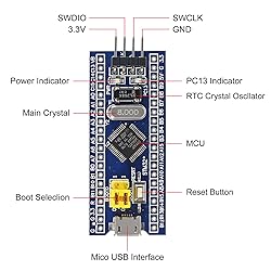 【ST-Link V2 Programmer】: Support the full range of STM32 SWD debugging interface, a simple 4-wire interface (including power), fast, stable; interface definition housing directly marked. Increased the 5V power output, the output I / O ports are protected afraid of operational errors caused by ST-LINK V2 damage. Board of MCU-based basic circuits, such as a crystal oscillator circuit, USB interface and USB power management circuits, and so on. Equipped with high quality 1*40/2.54mm spacing of single rows of pins, ensuring excellent conductivecontact. Use the current smart phones of Mirco USB interface, easy to use, USB communication and power supply can be done.