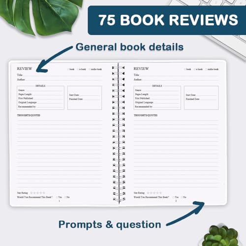 - FEATURES - Book journal holds up to 75 book reviews, plenty of room for ideas and quotes, prompted questions that can be used as book club guides. You can keep all your reading notes in one place.Write your own reading wish list, keeping track of books you've borrowed or lent to others.