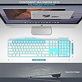 JOYACCESS Bluetooth Multi-Device Wireless Slim Quiet QWERTY Keyboard with Numeric Keypad, Profile Aluminum Keyboard for Laptop, Computer, PC, Windows (Blue & White)