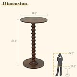 Overall Dimensions: 11.8''Dia. x 21.6''high Round Side Table: The side table features a walnut-grain pattern and a distinctive color, which creates a stylish appearance. The rounded tabletop makes it safer, and one of its legs utilizes wooden balls as connectors, adding an elegant touch. It is the ideal choice for minimalist furniture, enhancing the ambiance of your room Sturdy Structure: This round side table, crafted from high-density MDF and finished with a water-resistant coating. The base of this small drink table has a relatively large area and a thickened double-layer design, which ensures the stability of this side table and prevents it from sliding or tilting Multiple Functions: Ideal as a side table next to the sofa, a couch end table, a nightstand beside the bed, a small drink table outdoors, or even a plant stand, this versatile side table serves multiple purposes and meets various needs in your home Compact Size: The overall dimensions of this round side table are 11.8''Dia. x 21.6''high. Featuring a compact and lightweight design, the round side table saves space and allows for effortless placement anywhere Easy Assembly: This small table is easy to assemble without any tools, following the user-friendly instuction you can finish it in 5 minutes. If you have any questions, please don't hesitate to reach out to us – we're here to assist you every step of the way