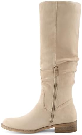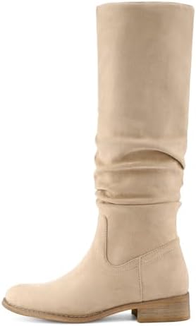 Shoe'N Tale Women's Knee High Boots Flat Low Heel Slouch Pointed Toe Winter Shoes with Side Zipper