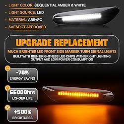 COMPATIBILITY: This GemPro LED side marker light assembly is compatible with 2008-2013 BMW 1-Series Coupe & Convertible (E82/E88), 2002-2005 BMW 3-Series Sedan (E46 Facelift), 2006-2011 BMW 3-Series Sedan & Wagon (E90/E91), 2007-2013 BMW 3-Series Coupe & Convertible (E92/E93), 2004-2010 BMW 5-Series Sedan & Wagon (E60/E61), 2004-2010 BMW X3 (E83). DUALLY SWITCHBACK FUNCTION: Built-in full LED chips with dual-color switchback features. Switchback different color among white parking light and sequential amber turn signal lamps. DURABLE DESIGN: These turn signal blinker marker lamp are weather-sealed, Waterproof/Dust proof/Shockproof. Made of light-weight durable ABS plastic housing and tough PC lens, lifespan more than 55000 hours. WIRING REQUIRED: Simply splice the including wiring to the headlight signal wire to enable the signal function. PACKAGE & WARRANTY: 2x Side marker lights(Sequential Amber&White). Provide 12 Month Warranty. Any questions about the installation or quality, please feel free to contact us. Thanks.