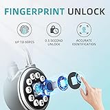 【FINGERPRINT UNLOCKING & PASSWORD UNLOCKING】Fast fingerprint unlocking in 0.2 seconds with a touch of the finger. Large-capacity fingerprint memory-up to 60 fingerprints can be registered. Using advanced identification technology, the unlocking speed is faster than ordinary rope locks and key locks. You can also authorize and share the lock to your family/friend to use. Password unlocking is also supported,friendly to children and the elderly. No longer worry about losing the key. 【RUGGED CONSTRUCTION & SECURITY】The SFW fingerprint padlock is made of sturdy aluminum alloy material, the stainless steel padlock beam further enhances the durability of the padlock, which can resist rust, cuts and water. The shackle has excellent tamper resistance and super cut resistance to keep your locker room or home safe. 【LONG BATTERY LIFE & USB-C CHARGEABLE】GS50S padlock has low power consumption and long standby time. The rechargeable battery can support half a year of standby and over 2400 times of unlocking. When the door lock is dead, it can be charged using a USB-C cable. 【LIGHTWEIGHT & PORTABLE & VERSATILE】Small 0.45 lbs fingerprint padlock is stylishly compact and lightweight, takes up little space and is easy to carry around. Stunning design has great compatibility. Suitable for indoor and outdoor use, such as gym lockers, luggage lockers, school lockers, bicycles, storage and, gates, fences, garages and more! 【CONVENIENT & EFFICIENT】Connect the smart padlock to the free app via Bluetooth. You can use the app to register fingerprints, unlock, set up authorized users, monitor unlock records, etc., so that the control is in your hands anytime, anywhere. 【24h Customer Service】- If you need any help in use, such as registering account, adding fingerprints, unlocking with remote authorisation, checking unlocking records, etc., you can send us a message at any time on Amazon or within the app, we will reply you within 12h, we will be happy to serve you.