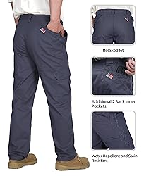 BOCOMAL FR Pants for Men Double Front Flame Resistant Cargo 10 Multi-Pockets Elastic Waist Work Pants