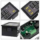- W3230 Digital LED Temperature Controller Module Digital Thermostat Switch with Waterproof Probe Programmable Heating Cooling Electronic Thermostat Specifications: Power Supply: DC 12V/DC 24V/AC 110V~220V Temperature Control Range: -50℃~120℃ Resolution Ratio: 0.1°C(-9.9-99.9); 1°C(other range) Temperature Control Accuracy: 0.1℃ Measurement Accuracy: ±0.1°C Return precision: 0.1℃ Sensor: NTC10K waterproof sensor ; Wire: 1 meter Output: Relay Contact Capacity 10A 220V / 20A 12V / 20A 24V Environmental requirements: -10-60°C , humidity 20%-85%RH LED Displaying Color: Red/Blue Features: 1.With clear digital LED display for better readability. 2.Wide temperature measuring range. Heating or cooling control. High control precision 0.1℃. 3.All parameters setting can be saved after short circuit. 4.Relay output. 5.Can be used for domestic freezer, water tanks, refrigerator, industrial chiller, steamer, industrial equipment and other temperature-controlled system. Instructions: Indicator status: flashing indicates that the cooling or heating start-up delay, constant light indicates that the relay is closed, and no light indicates that the relay is disconnected. If the delay timer is turned on, the light blinks during the delay timer and the relay is in the disconnected state. Digital tube: ①PV digital tube is a red display digital tube, the displayed value is the actual test temperature value, when there is an abnormality, it will display the corresponding abnormality sign, display "LLL" for the sensor open display code, display "HHH" for the mandatory disconnect relay display code, that is, the measured temperature exceeds the current temperature, the relay is disconnected. The display of "LLL" is the sensor open circuit display code, the display of "HHH" is the forced disconnect relay display code, that is, the measured temperature exceeds the maximum measuring range of the product thermostat will be forced to disconnect the relay, the display of "----" for the setting of high-temperature alarm exceeds the maximum value of the high-temperature alarm display code. SV digital tube is a blue display digital tube, the value displayed is the temperature value of the relay on and off, after pressing the "SET" button, the digital tube flashes, then you can add or subtract the value through the up arrow "" and down arrow "". The value can be added or subtracted by upward arrow " " and downward arrow " ". Main menu setting: Long press "SET" button for 3s to enter the main menu setting, continue to press "SET" to switch the P0-P8 mode, press the up arrow " ", down arrow " " to set the corresponding mode. Press up arrow " ", down arrow " " to set the corresponding mode, long press "SET" button 3S, or 8s no key action will automatically confirm the return. Switch: Long press "Restart" for 1.5s to close the display and relay, press "Restart" again for 1.5s to open the display. Package Include: 2pcs W3230 Digital LED Temperature Controller Module