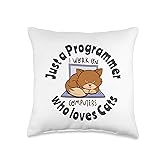 Just a programmer who loves cats and computers Coding IT Throw Pillow