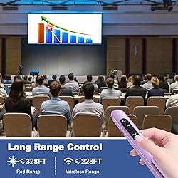- Enhance your presentations with this wireless presentation clicker! Designed for smooth control over your slides, this versatile powerpoint clicker is suitable for teachers, business professionals, and speakers alike. With its user-friendly design, you can effortlessly navigate through your slides with just a click.This presentation clicker features a range of advanced functionalities, including a built-in light pointer that helps you highlight key points during your presentation. The USB C wireless clicker ensures compatibility with various devices, making it an functional tool for anyone who frequently presents on computers or laptops.This pointer clicker for presentations boasts an impressive wireless range, allowing you to move around the room while keeping your audience engaged. Its ergonomic design fits comfortably in your hand, providing ease of use during long presentations.It's the slideshow clicker for those who demand reliability and efficiency. Whether you're leading a board meeting, teaching a class, or delivering a keynote speech, this presenter clicker will ensure you stay in control. Upgrade your presentation experience with this presentation pointer and make every slide transition smooth and impactful!