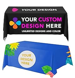 - Make your brand more visible with our customizable tablecloth, which lets you easily add your company's logo or graphics for a polished appearance. Our adaptable solutions help ensure that your brand stands out at any event, whether you choose our custom table runner or folding table cover. Our table cover is made of tough polyester and can withstand a variety of conditions. It can be used for both indoor and outdoor events. It helps provide longevity across multiple uses. Our custom tablecloth and runner's adaptable design adds an elegant touch to your presentation and is suitable for a variety of occasions, including craft fairs and trade shows. Our personalized tablecloth, paired with table protectors for increased durability, keeps its pristine appearance wash after wash with simple care. Our multipurpose tablecloth is a stylish and practical solution that can be used for anything from vendor booth displays to business events. It helps provide versatility and consistent brand representation with every use.
