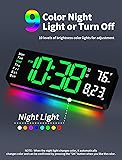 MASHI Digital Wall Clock, 16" Large Display Digital Clock with Remote Control, Auto-Dimming Wall Clock with Night Light, DST, Date Week,Temp for Living Room, Bedroom, Decor, Gift for Elderly