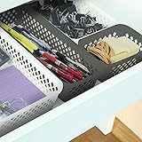VERSATILE ORGANIZER BINS - Effortlessly organize drawers, cabinets, and shelves. Use as utensil drawer organizers, pantry storage for spices and tea packets, and bathroom baskets for toiletries. BULK STORAGE SET - Package contains 6 open storage bins to easily keep supplies organized and separated. Create your own divided storage system by using multiple plastic baskets together. DURABLE & LIGHTWEIGHT - Decorative storage baskets are easy to move and designed to last. Bathroom storage containers boast a sturdy yet lightweight plastic build, decorative diamond design, and neutral grey color EASY TO CLEAN - Ideal for under sink storage and craft room bins, these multipurpose plastic baskets are easy to wipe clean, while the cutouts allow for good ventilation. Space-saving baskets nest together when not in use. DIMENSIONS - Long baskets are great for organizing makeup vanity cabinets, junk drawers, and kitchens. Long drawer organizers each measure 13.1 x 4.4 x 2.63 inches.