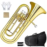 Professional-Grade Bb Euphonium for All Skill Levels:Perfect for beginners, students, and professional musicians, this Bb euphonium delivers rich, warm tones and exceptional playability. Its versatile design makes it ideal for brass band performances, solo practice, and ensemble playing Superior Sound Quality & Craftsmanship:Crafted from high-quality brass, this euphonium produces a smooth, resonant sound with excellent projection. The precision-engineered valves ensure responsive action and reliable performance every time Complete Starter Package:Includes a durable hard case for safe storage and transport, a mouthpiece, a polishing cloth, and white gloves. Everything you need to maintain and protect your euphonium for years of musical enjoyment Ergonomic Design for Comfortable Play:Designed with player comfort in mind, this euphonium features a balanced weight distribution and easy-to-operate valves, making it suitable for extended practice sessions and performances Perfect for Brass Bands & Solo Performances:Whether you're playing in a brass band or performing solo, this Bb euphonium delivers exceptional sound quality and reliability. Its classic design and professional features make it a standout choice for musicians of all levels