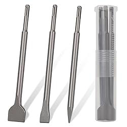 【ALL-IN-ONE KIT】This multifunctional 3 piece chisel bit set includes: 1 flat chisel 9.8" Long x 0.8" Wide, 1 point chisel 9.8" Long, and 1 scaling chisel 9.8" Long x 1.6" Wide with storage case. You can change each bit quickly to handle different demolition jobs. 【SDS PLUS SHANK】Perfectly compatible with All SDS Plus Rotary Hammer Drills Including Dewalt, Makita, Bosch, Milwaukee or any other. It is easy to install. 【HEAVY-DUTY CONSTRUCTION】This SDS Plus chisel drill bit set is made from high Premium chromium steel 40CR to ensure excellent strength and long using life. The Industrial grade forged steel has been drop forged and then heat tempered to stand the toughest of Materials. 【NONSLIP CONNECTION】Our handles are crafted for tight nonslip use thanks to the precise grooves and powerful torsion resistance to endure even punishing use. 【WIDE APPLICATION】This chisel set is perfect to use for working on concrete, masonry, wall, tile, bricks, stone and road. You can trust it from light chipping and scraping to more difficult chipping applications.