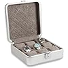 - Sleek Silver Travel Watch Case: This Prague watch case gives your collection a hard-sided home in brushed silver aluminum with clean, ridged lines. The compact, square profile feels like a mini briefcase for your timepieces, equally at ease in a safe, carry-on or displayed on a shelf. Inside, the quilted lid and soft interior present your watches in an organized, ready-to-wear layout.