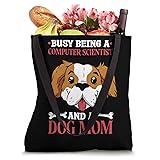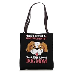 Busy Being A Computer Scientist And A Dog Mom Great computer scientist dog lover design for dog mom computer science. If you are searching for computer science or computer analyst this is for you. 16” x 16” bag with two 14” long and 1” wide black cotton webbing strap handles. Made of a lightweight, spun polyester canvas-like fabric. All seams and stress points are double-stitched for durability, and the reinforced bottom flattens to fit more items and hold larger objects. Spot clean/dry clean only.