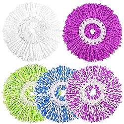 - Product Information - Quantity: 5 x Mop head replacements - Colors: Mix colours - Size: 14 inch - Material: Microfiber -Our mop heads replacements perfectly fit for Hurrica, Mopnad, Cassabel and other 360 spin mop systems. -The spin mop replacement head refill is made of 100% high-quality microfiber, super absorbent, durable and reusable. This 360° Spin mop replace head won't scratch the surfaces you're cleaning. Removes and absorbs tough dirt and grime effortlessly, just as the original brand. -The microfiber mop replace head is easy to install and very strong, sturdy, and effective work. It is ideal for cleaning all kinds of floors, such as wooden floors, ceramic tile, laminate floors, marble floors and other sealed hard floors. These mop heads replacements have superior decontamination ability, you can use the spin mop replacement head for car or window cleaning also. -These mop heads replacements for most round mop systems are machine washable and dryer-friendly, free your hands after heavy housework, saving time and labor to clean the floor and mop head, leave your home sparkling. Economical and environmentally.