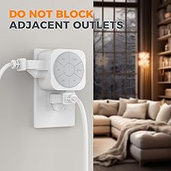 Simple and Practical: Just plug in socket and your device, setting schedule on light timer by pressing one of the 6 countdown time buttons, schedule's been set! Press the button in the middle to turn ON/ OFF the timer; You can also make your schedule repeat at the same time every day Space Saving: Plug this compact outlet timer on the top of the socket without blocking the other below, and create a multiple port charging station in your bedroom, bathroom, living room or any area with limited outlets; Fit for both GFCI and standard receptacles Customize Schedule for Devices: Timers for electrical outlets indoor supports 15min/ 30min/ 1H/ 2H/ 4H and 6H time schedule setting, which is suitable for your habit of using various home appliances; When you set the unit to turn off after 1 hour, press "1H" and the indicator lights up Up to 1875W Max: The timer for lights indoor comes with 1 AC outlet that power rates up to 1875W max, which suitable for many home appliances. You can use this timer plug with indoor lighting fixtures, electric bike, iron, fan, lamps, etc Save Energy and Money: The countdown timer outlet automates to turn the power off and on in a timely according to your needs, saving energy and money while extending the life of your appliances; in any indoor place such as home, office and dorm room with