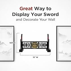 Stylish Sword Stand Display: Featuring a beautiful gold lion’s head made of steel – the LoGest Katana Sword Stand offers a visually appealing way to display your sword. Hang it up in your living room, bedroom, office, game room or anywhere else you desire. Premium Construction: The LoGest sword display stand is expertly crafted using high-quality wood that is resistant to warping, cracking and splitting to ensure long-term durability, furnished with red velvet pads to prevent scratches on your sword. Quick Mounting: Each Sword Stand comes complete with included mounting hardware and installation instructions, allowing you to effortlessly mount the Sword Mount Holder on any wall and proudly exhibit your weapon in no time at all. Great Gift Idea: Perfectly sized and beautifully crafted, LoGest’s Katana Holder will thrill any sword collector for years on end. As such, it’s a great gift choice for birthdays, holidays and other special occasions for any weapons enthusiast. Extraordinary Display: Measuring 9" H x 15 "W in size, the LoGest 1-Tier Sword Rack Stand offers a captivating way to display a Samurai sword – such as Katana, Wakizashi, Tanto, Nodachi, Ninjato, Shirasaya or Tachi – and decorate your home.