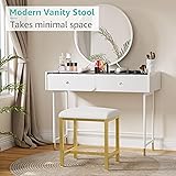 KAI-ROAD Small Vanity Stool, Cute Vanity Stools with Cushion, White Gold Makeup Vanity Chair for Small Spaces, Living Room, Bedroom, Bathroom, Entryway, Ottoman Foot Rest for Couch Sillas Modern