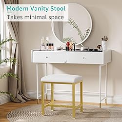 - "Discover the perfect blend of style and comfort with our small white vanity stool / footstool. Its plush, cushioned seat invites you to relax and rejuvenate, whether you're applying makeup, enjoying a leisurely read, or simply putting your feet up after a long day. Crafted with a sleek, minimalist design, this versatile vanity chairs effortlessly complements any decor. Its compact size makes it ideal for small spaces, while its lightweight nature allows for easy relocation. Don't be fooled by its petite frame – this stool can handle up to 250lbs, ensuring stability and support. Experience the ultimate in convenience with its multifunctional design. Use it as a vanities & vanity benches, a comfy footrest, an extra seat for guests, or even a stylish small ottoman. The possibilities are endless! Plus, its non-slip foot pads protect your floors while keeping the stool securely in place. Assembly is a breeze with our easy-to-follow instructions and included tools. In just minutes, you can start enjoying the benefits of this exceptional stool. Upgrade your living space and treat yourself to the comfort and style you deserve. Order your multifunctional vanity seat today!"