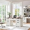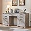 RedLemon 60" Farmhouse Executive Desk, Home Office Desk with Drawers, Charging Station, Keyboard Tray, File Drawer, Storage Cabinet, Wood Rustic Computer Writing Desk (Antique White)
