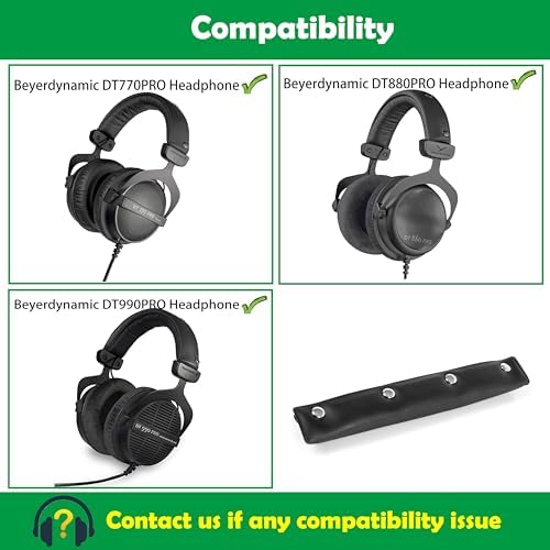 DT 770 PRO Headphone Earpads Replacement Compatible with Beyerdynamic DT 770 PRO/DT 880 PRO/DT 990 PRO Headphone Headband Cover with Soft Leather Headband Cushion