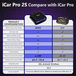 💯[ALL NEW DESIGN] - Turn your iPhone, Android device, or Windows PC into a professional-grade car diagnostic scan tool. The iCar Pro 2S Bluetooth OBD-II adapter can access all legal OBD2 protocols, you can quickly and intuitively understand your car through third-party software. 🌟[DISTINCTIVE FEATURES] - In addition to fuel vehicles, iCar Pro 2S can also efficiently manage your hybrids or EVs. iCar Pro 2S OBD2 car code reader can support up to 208 groups pass, block, and flow control filters to ensure more complex diagnostic needs for your hybrids or EVs. 🚗[CAR COMPATIBILITY] - Applicable to MOST EU-based cars (made in 2000 or later), US-based cars (made in 1996 or later) and Asian cars (made in 2006 or later), and all OBD2, EOBD, JOBD and CAN protocol 12V Light diesel vehicles with a load of 6.5T or less vehicles. NOTE: Please DO NOT use on 24V cars. 🔗[BLUETOOTH 5.2] - Compared to the iCar Pro Bluetooth 4.0, iCar Pro 2S Bluetooth 5.2 OBD2 diagnostic scan tool offers even faster data transfer speeds, reaching up to 3Mbps. 💡[APP GALORE] - iCar Pro 2S Bluetooth car scanner works with more 3rd party apps and software than any other adapter. such as Torque, Car Scanner, Dr.Prius, OBD JScan, BimmerCode, etc. You can find a detailed list of the supported cars or functions on apps. NOTE: Fee in some apps. 🍀[EASY TO OPERATE] - Compatible with Android and iOS (NO Bluetooth pairing needed in iOS, just connect in the app) devices. iCar Pro 2S Bluetooth OBD2 scanners have easy setup, lower power usage, compared to WiFi adapters, and don't block internet access for other apps. ⬇️[LIFETIME FREE UPGRADE] - Support for upgrading product firmware on phones and Windows PC. Please feel free to contact us for any questions.
