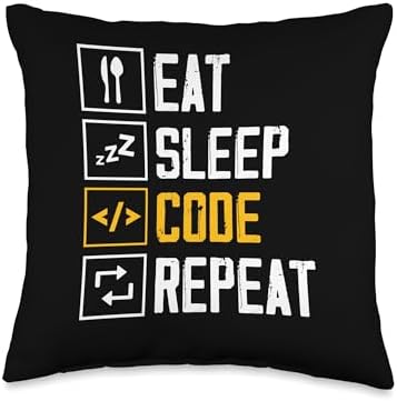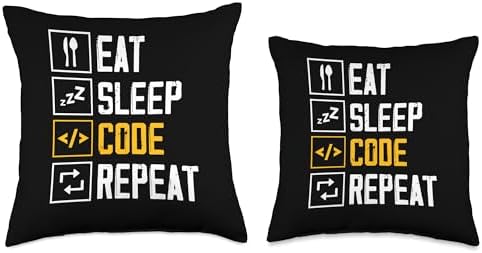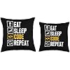Eat Sleep Code Repeat Sayings Programmer Coder Coding Throw Pillow