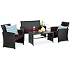 Best Choice Products 4-Piece Outdoor Wicker Patio Conversation Furniture Set for Backyard w/Coffee Table, Seat Cushions - Black/Deep Burgundy