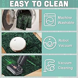 Binary Code Design Area Rug: This classic rectangular rug features a Binary Code game design, perfect for game rooms, bedrooms, or living spaces. Easy Care: Made of polyester with a flat woven construction, this medium pile rug can be machine washed for easy maintenance. Non-Slip and Safe: The upgraded anti-slip bottom ensures the rug stays securely in place, providing a safe environment for families and children. Versatile Usage: Suitable for indoor or outdoor use on various floor types, this water-repellent rug can also serve as a doormat, bath mat, or yoga mat. Great Gift: Cute Colorful Code Game Print Rugs make your room unique and fun. The Rug is the perfect gift for your friends and family, especially for Kids gifts. Game design carpet Perfect for the video game room, computer game rooms.