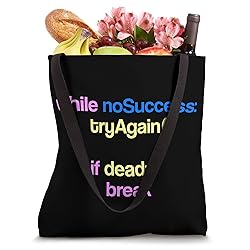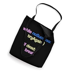 Funny coding tees with code: while no success, tryagain for those who love, learning and study programming. Cool idea for those who love coding C#, C++, HTML, Python, Javascript, Java developer, application game and apps programmer. 16” x 16” bag with two 14” long and 1” wide black cotton webbing strap handles. Made of a lightweight, spun polyester canvas-like fabric. All seams and stress points are double-stitched for durability, and the reinforced bottom flattens to fit more items and hold larger objects. Spot clean/dry clean only.