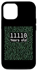Introducing the perfect birtday gift for the coder, geek and techie in your life, this funny top saying 11110 years old which mean 30 years old while featuring a green stream of binary code. Funny birthday tee for tech guys, husband, dad or friend Perfect gift for software developer men and women, also for network engineer, IT professional,coder and web developer. Stand out in tech meetings or hackathons with our sarcastic PC geek birthday tee. Funny gift for son and daughter who are computer nerds Two-part protective case made from a premium scratch-resistant polycarbonate shell and shock absorbent TPU liner protects against drops Printed in the USA Easy installation
