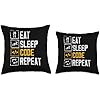 Eat Sleep Code Repeat Programmer Coder Sayings Coding Throw Pillow