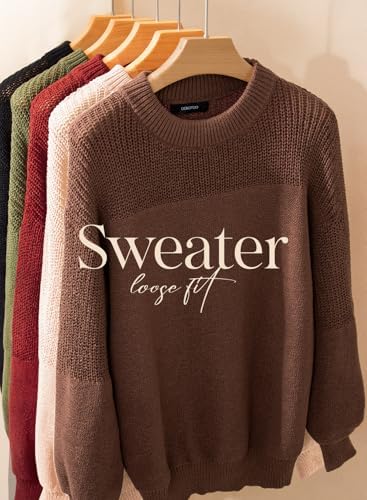 Dokotoo Women's Casual Long Sleeve Sweaters Loose Crewneck Knit Solid Pullover Sweater Jumper Tops