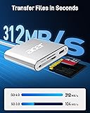SD 4.0 Data Transfer: The Acer USB-C SD Card Reader supports the latest UHS-II memory cards, delivering blazing speeds of up to 312MB/s. Enjoy data transfers three times faster than ordinary UHS-I card readers, perfect for 4K movies, high-resolution photos, and video Vlogs. Read & Write 2 Cards Simultaneously: Say goodbye to cumbersome file transfers. This Micro SD Card Reader allows you to read and write data on two cards simultaneously, enabling seamless sync, transfer, and copying between your cards without the hassle of constant plugging and unplugging.(📌Note:If the case is too tight, the adapter may not insert properly) Versatile Compatibility: The SD Card Reader comes with a USH-II SD slot and a USH-II micro SD slot, both equipped with SD4.0 protocols. Effortlessly read a wide variety of memory cards, including UHS-II SD, SDHC, SDXC, MicroSD, MicroSDHC, MicroSDXC, MMC, and RS-MMC, allowing seamless access to your entire memory card library. 100W PD Fast Charging: The Type-C SD card reader supports the PD fast charging protocol with a maximum power of 100W. The port is for charging only and does not support data transfer. Durable & Portable: Crafted with a sturdy aluminum alloy case and a 0.66ft cable, this Micro SD Card Reader combines portability with durability. Wide Compatibility: The SD 4.0 Memory Card Reader is compatible with a wide range of devices, including laptops, tablets, iPhone 16/16 Pro/15/15 Pro, MacBook Air/Pro, iPad, and Android smartphones. Plug in the card reader and your memory cards to easily share your moments. (📌Note: Android phones require OTG support).