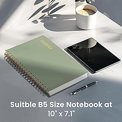 Spacious 300-Page Spiral Notebook: Thick Notebook which offers 300 pages (150 sheets), it provides ample space for all your writing needs. The B5 size (7.1"x10") is ideal for extensive note-taking, journaling, or creative writing, giving you plenty of room to capture your thoughts. Whether you’re using it as a work notebook, journal for writing, or notebook for school, it fits easily into your daily routine. Structured College-Ruled Pages: Featuring 7mm college-ruled lines, this journal notebook helps keep your writing organized and legible. The evenly spaced lines are perfect for structured notes, work lists, or detailed writing, making it an excellent choice for school students, professionals, and writers alike. It also includes 6 content pages, perfect for creating an index for easy reference. Premium 100gsm Thick Paper: Enjoy a smooth and satisfying writing experience with 100gsm thick paper. The high-quality, cream-colored paper resists ink bleed-through, making it perfect for various pens, including fountain pens and gel pens. The paper ensures that your notes remain crisp and readable, giving you confidence that your writing will stand the test of time. Thoughtful Design with Extras: Built to last, this hardcover notebook features a sturdy cover that protects your pages from daily wear and tear. It includes a convenient strap to keep it securely closed and built-in pockets for additional storage, making it perfect for use as a work notebook or notebook for school. The spiral notebook college ruled offers both durability and style, making it a must-have among aesthetic notebooks. Versatile for Any Purpose: Taja B5 notebook journal is incredibly adaptable, whether for journaling, planning, sketching, or note-taking. Its versatile format and high-quality construction make it suitable for any purpose, from professional use to personal projects. This lined spiral notebook is the perfect companion for those who value both functionality and style in their everyday writing tools.
