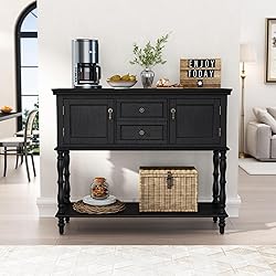 ARTPOWER Console Table with 2 Drawers, Retro Entryway Table with 2 Door Cabinets and Open Storage Shelf, Narrow Long Behind Couch Sofa Table for Living Room, Foyer, Hallway, Black