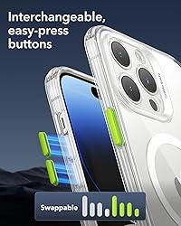 Compatibility: only compatible with iPhone 14 pro max; full functionality maintained via precise speaker and port cutouts and easy-press buttons Swappable Easy-Press Buttons: colorful easy-press buttons let you select the style you want Air Cushion Frame: grooved design allows heat to dissipate faster to reduce phone lag caused by overheating while keeping your phone lightweight Stronger Magnetic Lock: powerful built-in magnets with 1,500 g of holding force enable faster, easier place-and-go wireless charging and a secure lock on any MagSafe accessory Military-Grade Protection: shock-absorbing Air Guard corners combine to ensure total phone protection against drops, bumps, and scratches Complete Customer Support: detailed setup videos and FAQs, comprehensive 12-month protection plan, lifetime support, and personalized help.